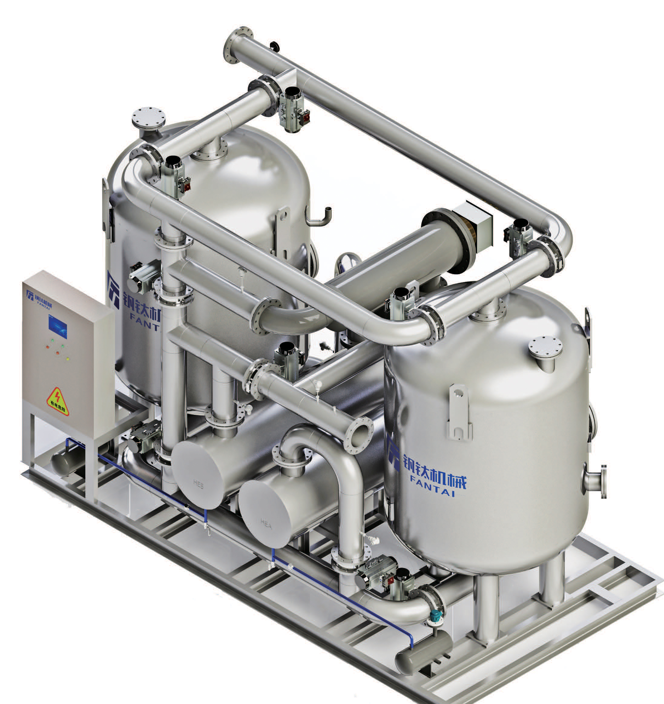 - FYL型零氣耗壓縮熱再生吸附式壓縮空氣干燥機是利用空氣壓縮過程產生的熱量對吸附劑進行再生 ,吸附床層冷卻過程也全部使用帶壓的壓縮空氣 , 確保設備整個工作過程不消耗壓縮空氣